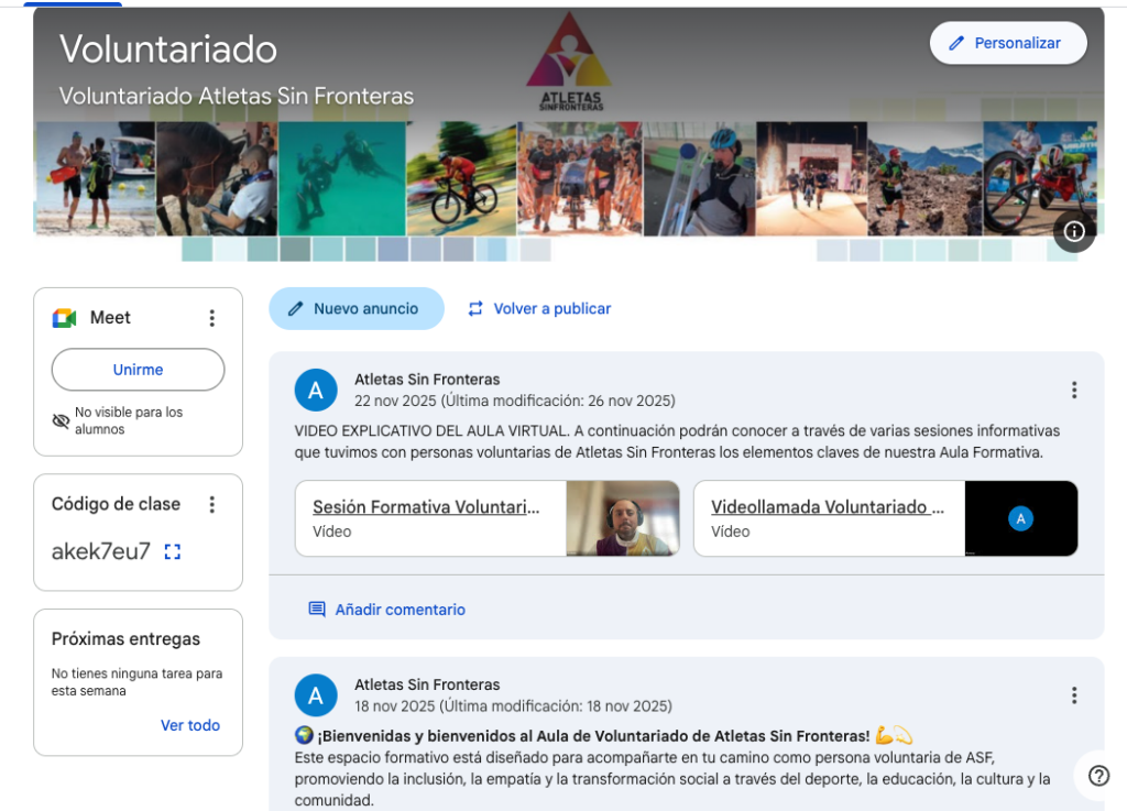 En Atletas Sin Fronteras hemos diseñado un proceso estructurado de incorporación al voluntariado que garantiza una experiencia formativa, acompañada y de calidad. Desde el primer contacto a través del formulario de interés, pasando por la acogida, la formación en el Aula Virtual y la posterior incorporación a proyectos, cada fase está orientada a preparar a las personas voluntarias para una participación activa y con impacto real. Este itinerario permite asegurar que todo el voluntariado comparte conocimientos, valores y herramientas comunes antes de iniciar su colaboración en la entidad.